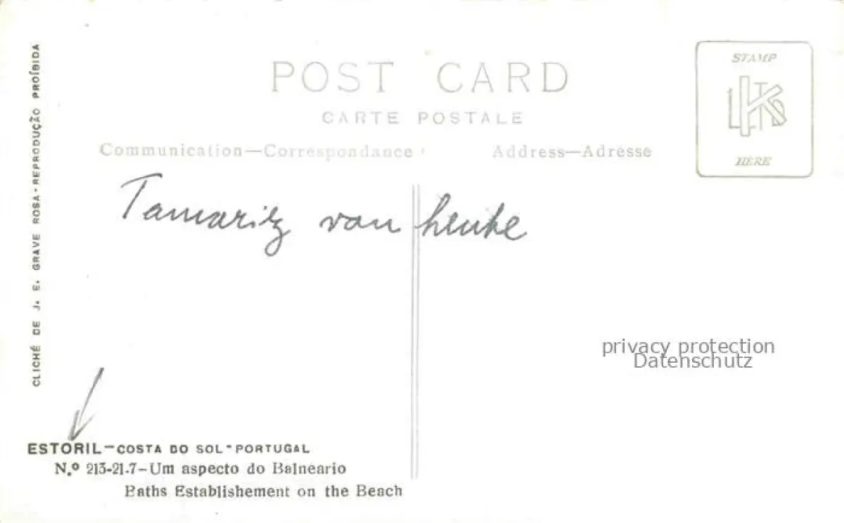 Estoril PT Um aspecto do Balneario Baths Establishment on the beach postalisch nicht gelaufen Erhaltung siehe scans [FriedD77]