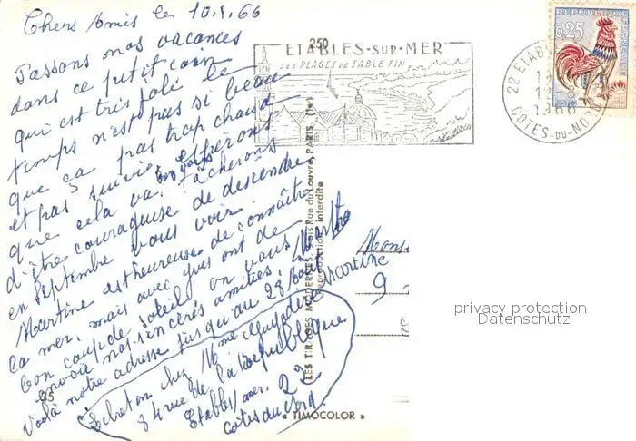 Etables-sur-Mer_Cotes-d_Armor Les Falaises du Moulin et la Croix de la Colombiere La Plage des Godelins Eglise Le Parc Etables-sur-Mer_Cotes-d postalisch gelaufen 1966 Erhaltung siehe scans [WerneD78] WernPID7