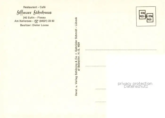 Eutin Restaurant-Cafe Fissauer Faehrhaus Eutin postalisch nicht gelaufen nach 1965 Erhaltung siehe scans [LiesaD40] LiesID40