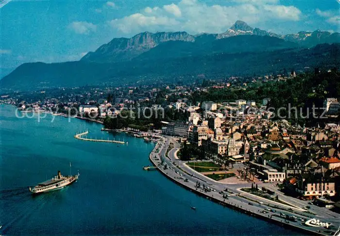 AK / Ansichtskarte Evian les Bains_74 Vue generale aerienne Les Memises et la Dent d Oche