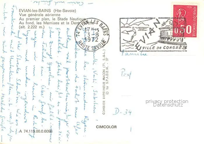 Evian-les-Bains_Haute_Savoie Stade Nautique au fond les Memises et la Dent d'Oche Alpes vue aérienne Evian-les-Bains_Haute postalisch gelaufen 1972 Erhaltung siehe scans [FriedD77] Frierer