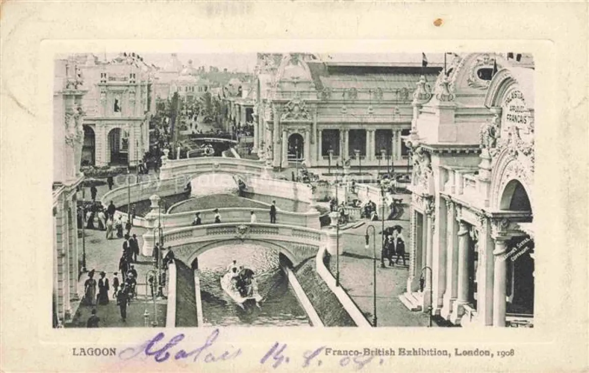 alte Postkarte Exhibition Franco-British London 1908 Lagoon New York postalisch gelaufen Erhaltung siehe scans [SanaeD93]
