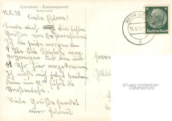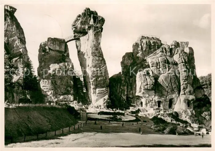 Externsteine Vorderansicht Externsteine postalisch gelaufen 1938 Erhaltung siehe scans [FriedD77] Frierer