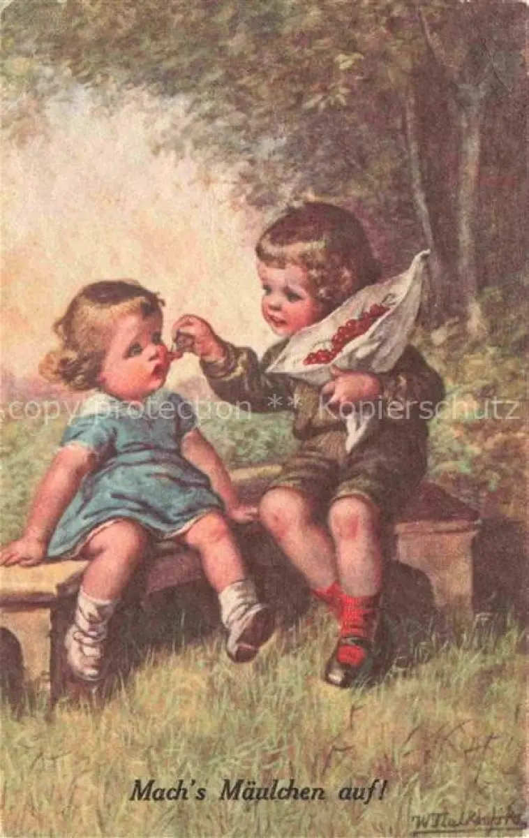 FIALKOWSKA Wally Kuenstlerkarte Kinder Child Litho Fruechte Beeren postalisch gelaufen Erhaltung siehe scans [SanaeD93] alte Postkarte Sana Katcode 22240000001400