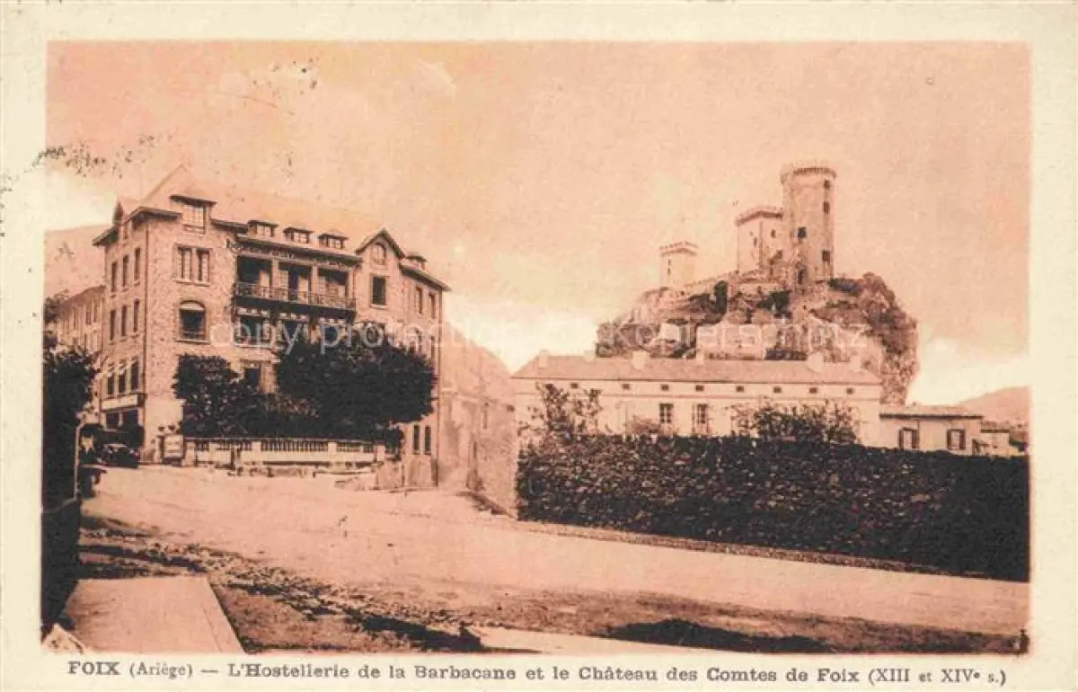 14085985 FOIX 09 Ariege Hostellerie de la Barbacane et Château des Comtes de Foix XIII et XIVe siècles postalisch gelaufen Erhaltung siehe scans [FriedD77] alte Postkarte Frie Katcode 11170009109122