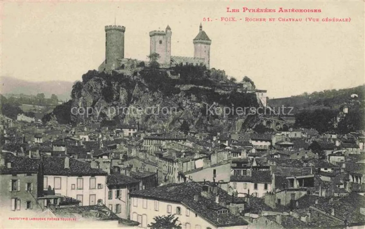 14085990 FOIX 09 Ariege Vue générale et Rocher du Château postalisch nicht gelaufen Erhaltung siehe scans [FriedD77] Frie Katcode 11170009109122