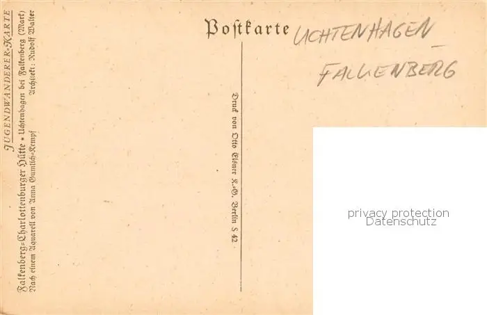 Falkenberg_Lichtenhagen_Mark Charlottenburger Huette postalisch nicht gelaufen 1921-1965 Erhaltung siehe scans [FriedD77] Frierer