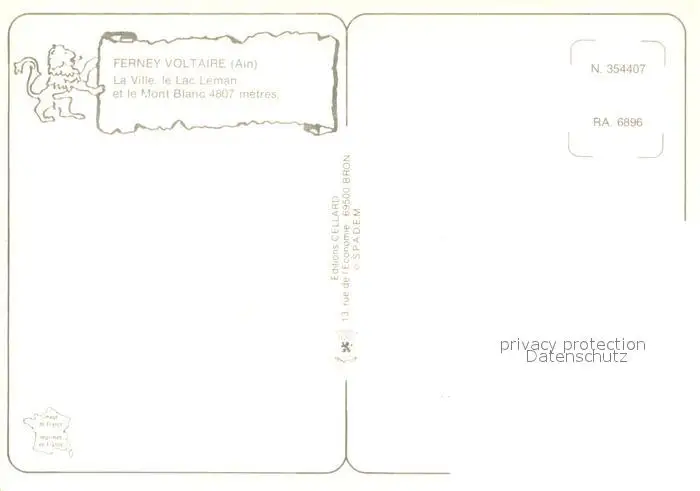 Ferney-Voltaire Statue Mont Blanc Monument La Ville Lac Leman Vue d'ensemble Ferney-Voltaire postalisch nicht gelaufen nach 1965 Erhaltung siehe scans [WerneD78] WernPID7