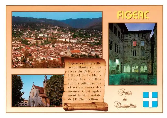 AK / Ansichtskarte Figeac Vue generale Eglise de Carmes Place des Ecritures