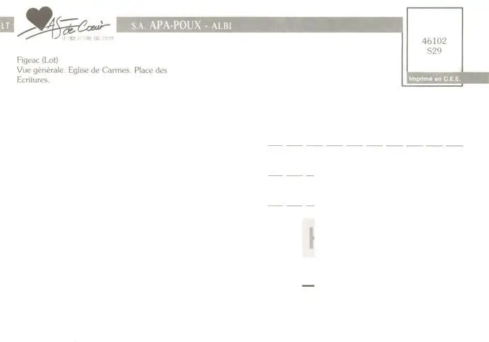 Figeac Vue generale Eglise de Carmes Place des Ecritures Figeac postalisch nicht gelaufen nach 1965 Erhaltung siehe scans [FriedD77] Frierer