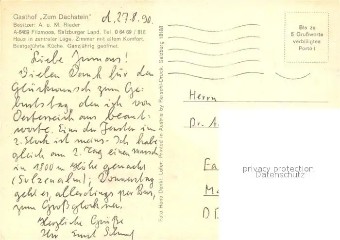 Filzmoos Gasthof Zum Dachstein Filzmoos postalisch gelaufen 1990 Erhaltung siehe scans [WerneD78] WernPID7