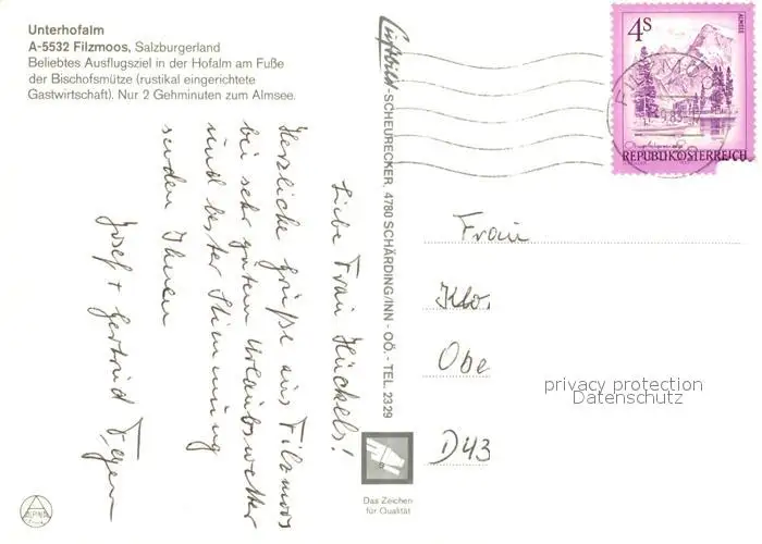 Filzmoos Unterhofalm Hochkesselkopf Torstein Gaststube Filzmoos postalisch gelaufen nach 1965 Erhaltung siehe scans [WerneD78] WernPID7