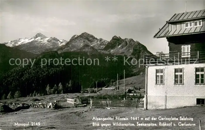 AK / Ansichtskarte Filzstein Alpengasthof Filzstein auf der Gerlosplatte Salzburg mit Wildkarspitze Seekarspitze Rosskopf und Gerlosturm Filzstein