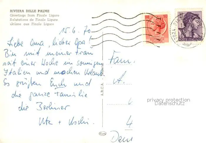Finale_Ligure Finale_Ligure postalisch gelaufen 1970 Erhaltung siehe scans [NatalD47] NataID47