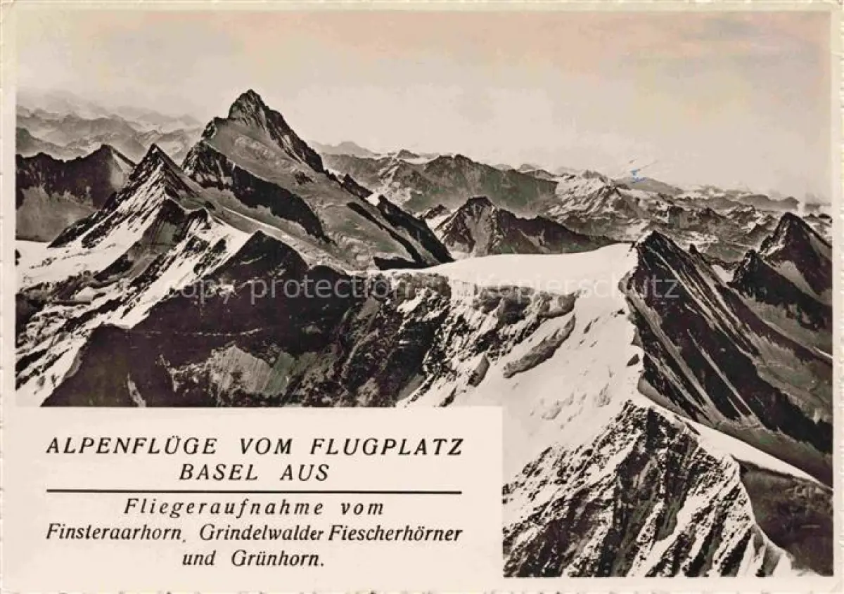 alte Postkarte Finsteraarhorn 4274m BE Alpenfluege mit Grindelwalder Fiescherhoerner und Gruenhorn postalisch gelaufen Erhaltung siehe scans [WerneD78]