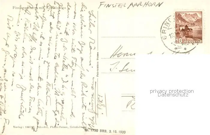 Finsteraarhorn_4274m_BE mit Agassizhorn postalisch gelaufen 1921-1965 Erhaltung siehe scans [WerneD78] WernPID7