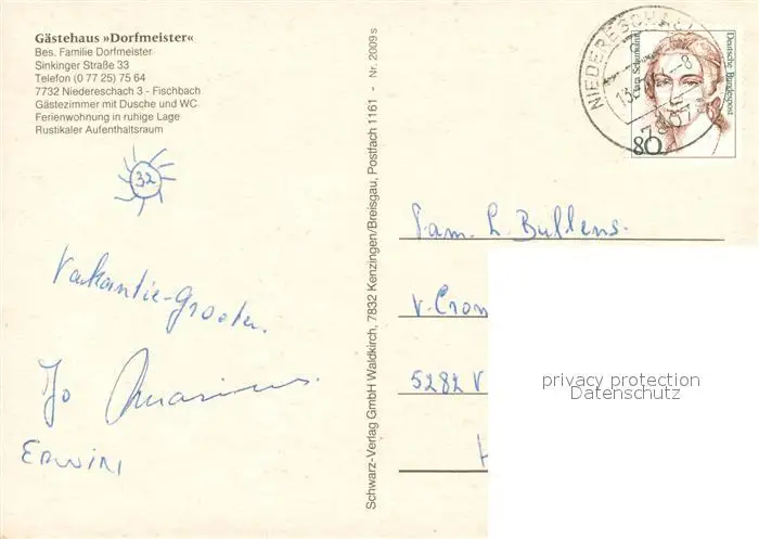 Fischbach_Niedereschach Gaestehaus Dorfmeister Gaststube Fischbach Niedereschach postalisch gelaufen 1987 Erhaltung siehe scans [WerneD78] WernPID7