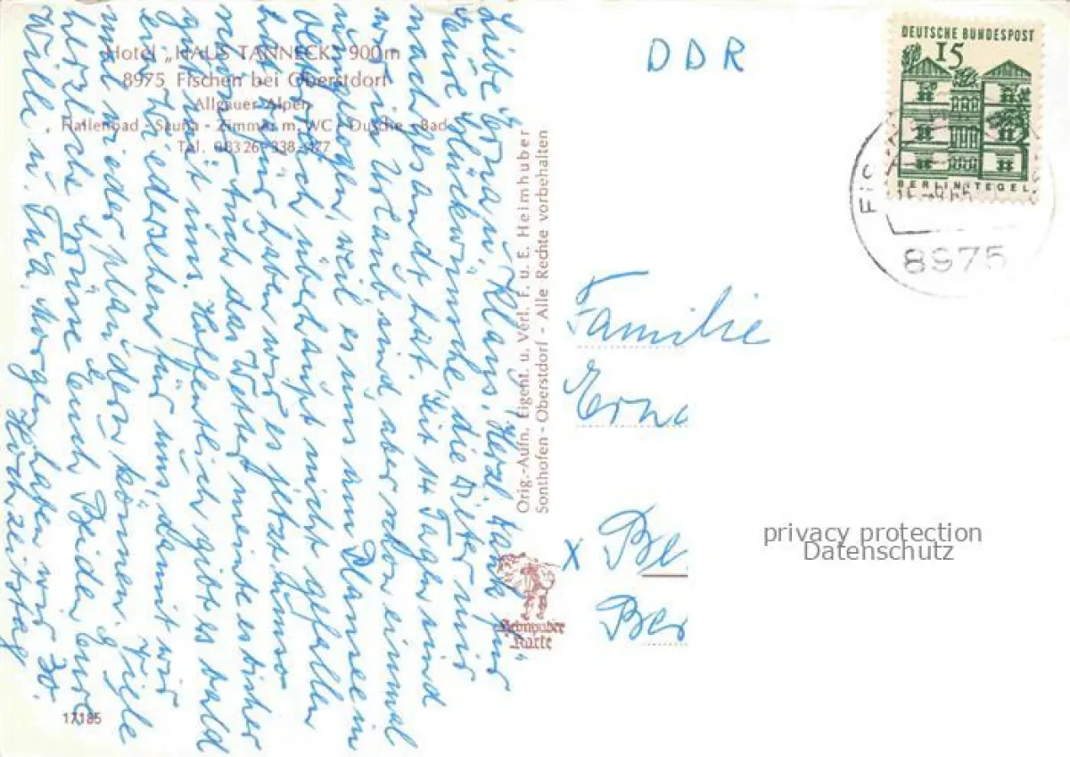 alte Postkarte Fischen Allgaeu Bayern Hotel Haus Tanneck Gastraeume Hallenbad postalisch gelaufen Erhaltung siehe scans [WerneD78]