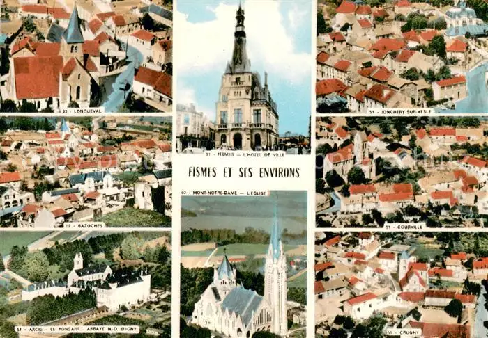AK / Ansichtskarte Fismes et ses environs Longueval Bazoches Le Ponsart Abbaye ND d’Igny Hotel de Ville Mont Notre Dame Eglise Jonchery sur Vesle Courville Crugny Fismes