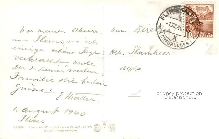 Flims_GR Caumasee Bergsee Alpen Flims_GR postalisch gelaufen 1940 Erhaltung siehe scans [FriedD77] Frierer