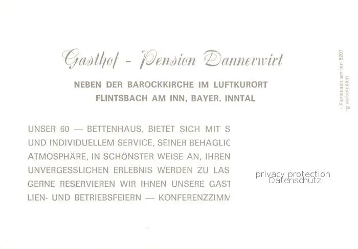 Flintsbach_Inn Gasthof Pension Dannerwirt Flintsbach Inn postalisch nicht gelaufen nach 1965 Werbekarte (keine Postkarte) Erhaltung siehe scans [WerneD78] Werbekarte (keine Postkarte) WernPID7