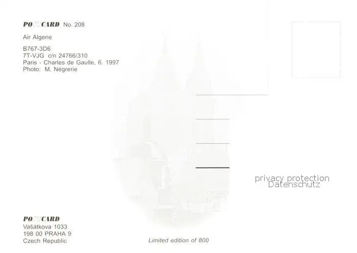 Flugzeuge_Zivil Air Algerie B767-3D6 7T-VJG c/n 24766/310 Flugzeuge Zivil postalisch nicht gelaufen 1997 Erhaltung siehe scans [PaolaD17] PaolPID1