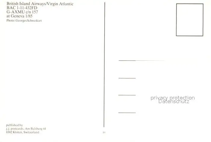 Flugzeuge_Zivil British Island Airways Virgin Atlantic BAC-1-11-432FD G-AXMU c/n 157 Flugzeuge Zivil postalisch nicht gelaufen 1985 Erhaltung siehe scans [PaolaD17] PaolPID1