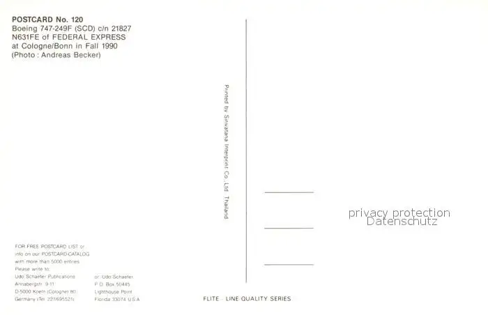 Flugzeuge_Zivil Federal Express Boeing 747-249F c/n 21827 N631FE Flugzeuge Zivil postalisch nicht gelaufen 1990 Erhaltung siehe scans [PaolaD17] PaolPID1