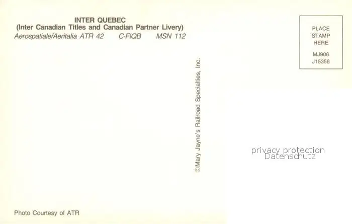Flugzeuge_Zivil Inter Quebec Aerospatiale Aeritalia ATR-42 C-FIQB MSN 112 Flugzeuge Zivil postalisch nicht gelaufen nach 1965 Erhaltung siehe scans [PaolaD17] PaolPID1