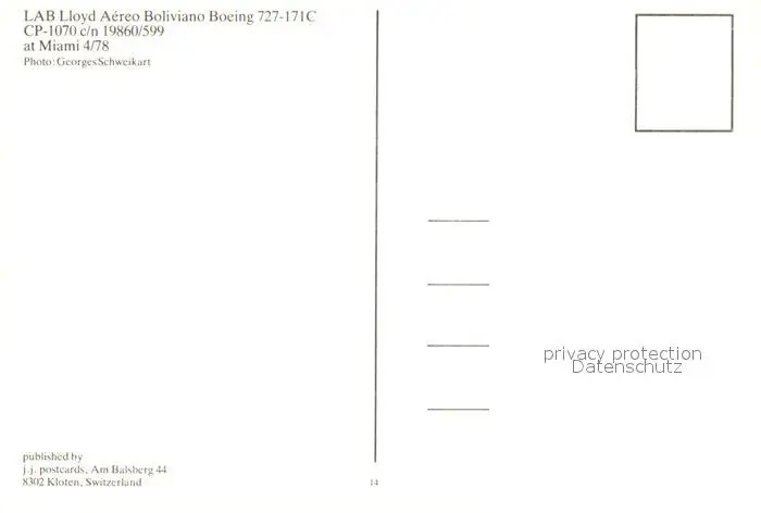Flugzeuge_Zivil LAB Lloyd Aereo Boliviano Boeing 727-171C CP-1070 c/n 19860/599 Flugzeuge Zivil postalisch nicht gelaufen 1978 Erhaltung siehe scans [PaolaD17] PaolPID1