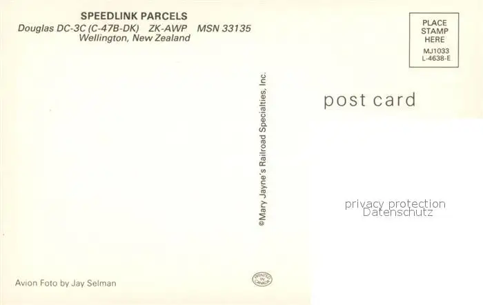 Flugzeuge_Zivil Speedlink Parcels Douglas DC-3C ZK-AWP MSN 33135 Flugzeuge Zivil postalisch nicht gelaufen nach 1965 Erhaltung siehe scans [PaolaD17] PaolPID1