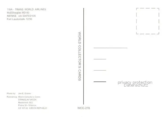 Flugzeuge_Zivil TWA Trans World Airlines McDDouglas MD-83 N978AS c/n 53470/2135 Flugzeuge Zivil postalisch nicht gelaufen 1996 Erhaltung siehe scans [PaolaD17] PaolPID1