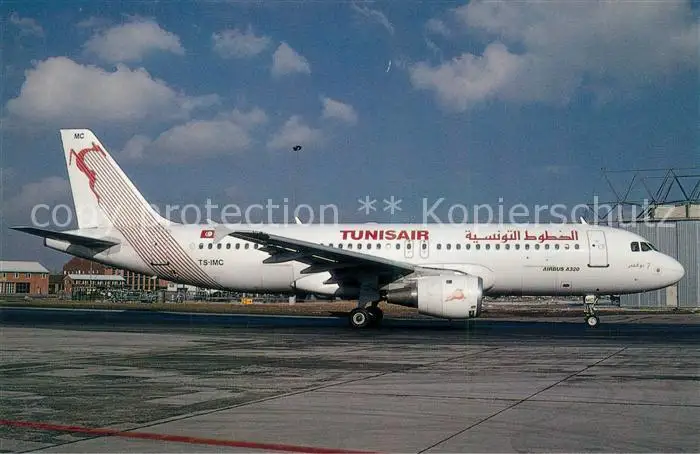 AK / Ansichtskarte Flugzeuge_Zivil Tunis Air Airbus A320 211 c n 124 TS IMC Flugzeuge Zivil