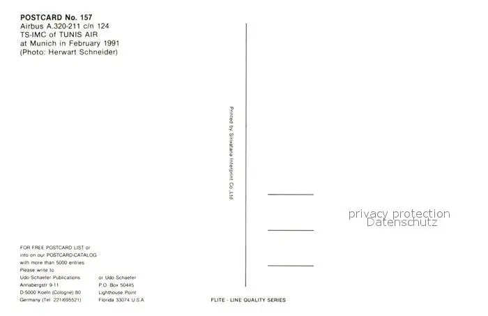 Flugzeuge_Zivil Tunis Air Airbus A320-211 c/n 124 TS-IMC Flugzeuge Zivil postalisch nicht gelaufen 1991 Erhaltung siehe scans [PaolaD17] PaolPID1