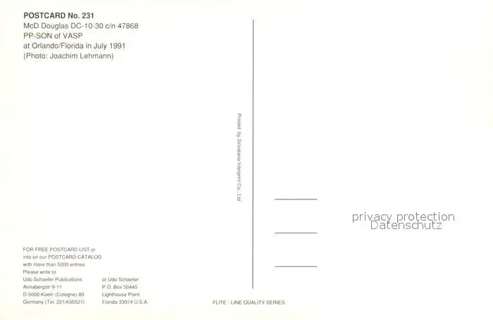Flugzeuge_Zivil VASP McD Douglas DC-10-30 c/n 47868 PP-SON Flugzeuge Zivil postalisch nicht gelaufen 1991 Erhaltung siehe scans [PaolaD17] PaolPID1