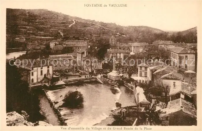 AK / Ansichtskarte Fontaine de Vaucluse Vue d ensemble du Village et du Grand Bassin de la Place Fontaine de Vaucluse