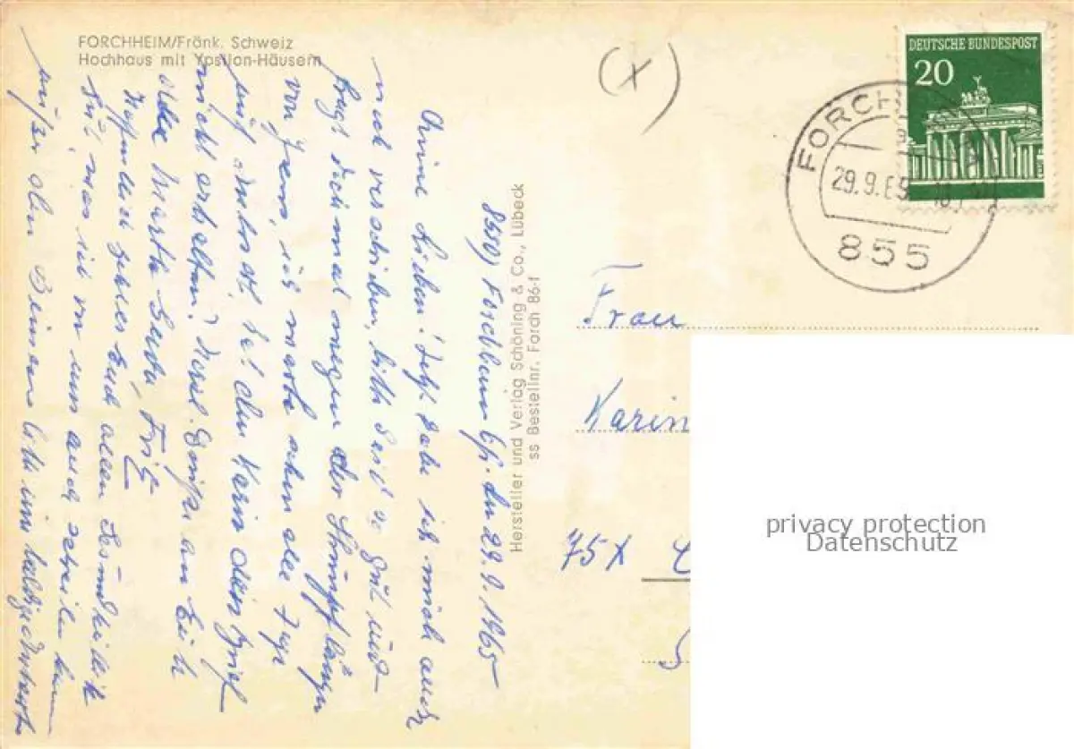alte Postkarte Forchheim Oberfranken Hochhaus mit Ypsilon Haeusern postalisch gelaufen Erhaltung siehe scans [WerneD78]