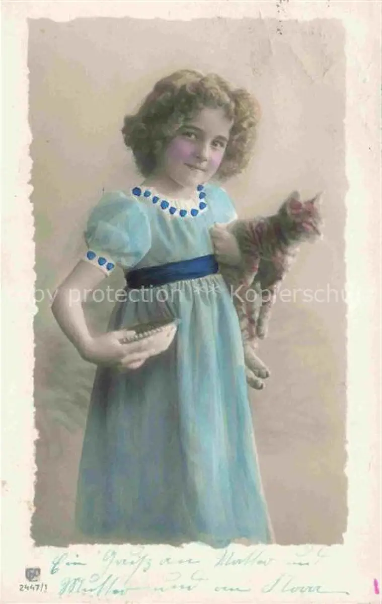 Foto GLCo Nr. 2447/1 Maedchen Katze postalisch gelaufen Erhaltung siehe scans [SanaeD93] alte Postkarte Sana Katcode 22060000000600