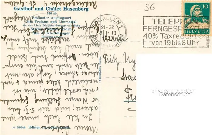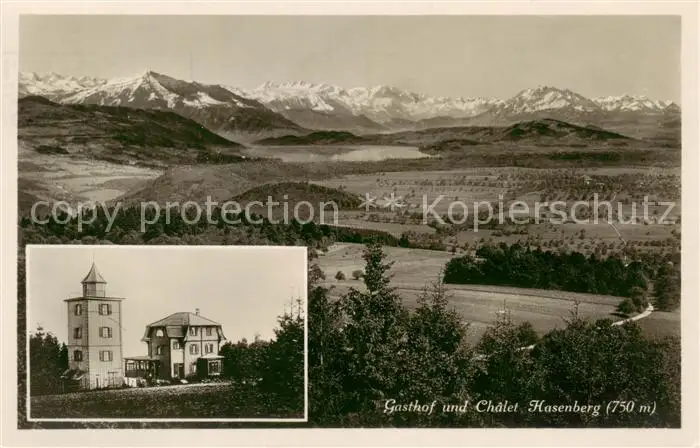 Freiamt_St_Gallen_SG Gasthof Châlet Hasenberg Landschaftspanorama Limmattal Alpen postalisch gelaufen 1932 Erhaltung siehe scans [FriedD77] Frierer