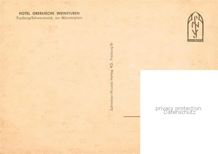Freiburg_Breisgau Hotel Oberkirchs Weinstuben Freiburg Breisgau postalisch nicht gelaufen nach 1965 Erhaltung siehe scans [FriedD77] Frierer