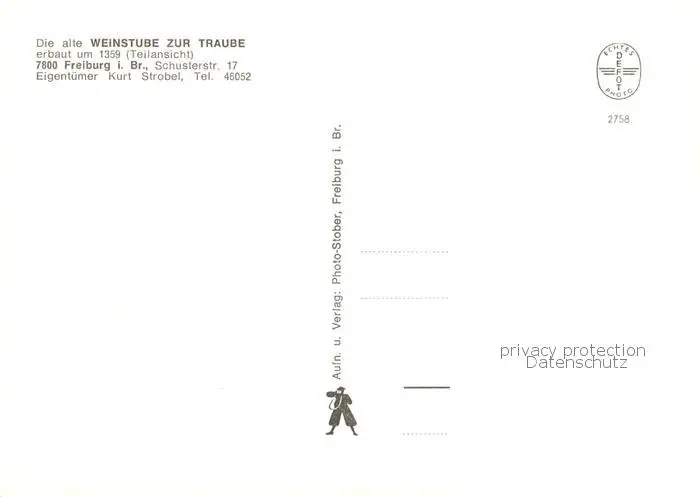 Freiburg_Breisgau Weinstube zur Traube Gaststube Freiburg Breisgau postalisch nicht gelaufen nach 1965 Erhaltung siehe scans [FriedD77] Frierer