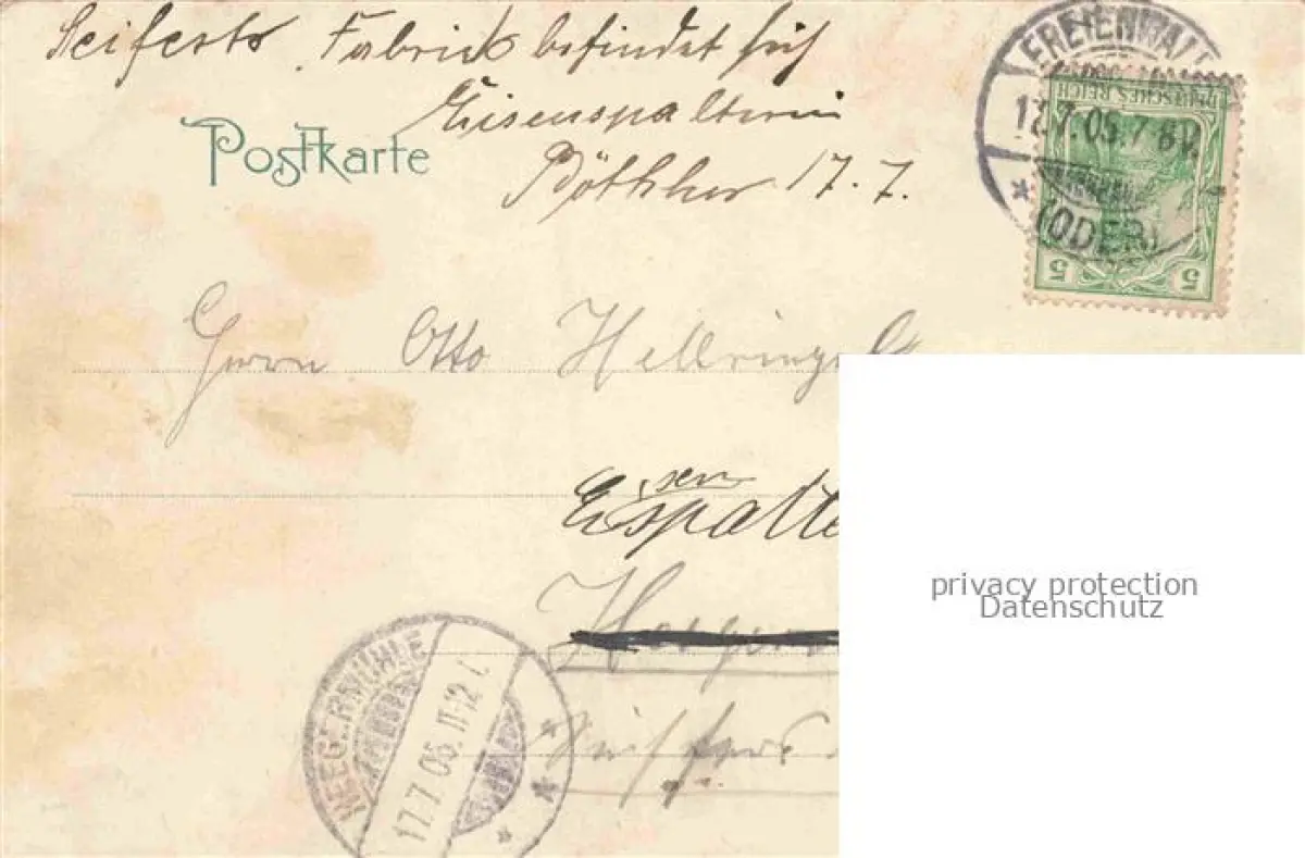 alte Postkarte Freienwalde Papenmuehle postalisch gelaufen Erhaltung siehe scans [FriedD77]
