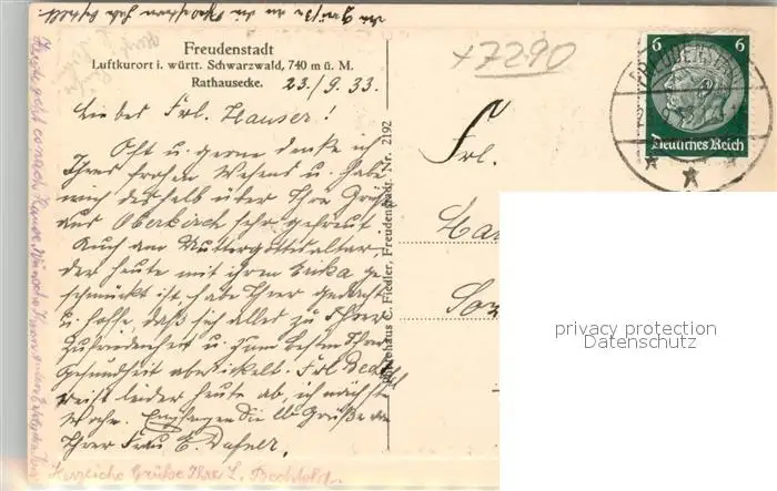 Freudenstadt Rathausecke Freudenstadt postalisch gelaufen 1933 Erhaltung siehe scans [WerneD78] WernPID7
