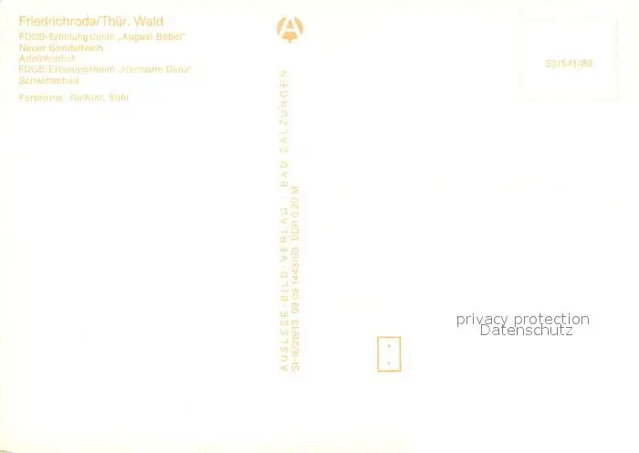 Friedrichroda FDGB Erholungsheime Gondelteich Adolphsblick Schwimmbad Freibad Friedrichroda postalisch nicht gelaufen 1989 Erhaltung siehe scans [FriedD77] Frierer
