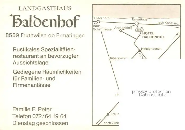 Fruthwilen Landgasthaus Haldenhof Fruthwilen postalisch nicht gelaufen nach 1965 Werbekarte (keine Postkarte) Erhaltung siehe scans [KathaD81] Werbekarte (keine Postkarte) Kathoren