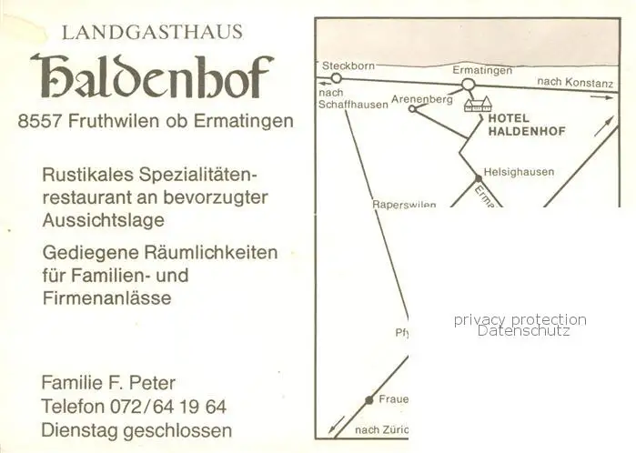 Fruthwilen Landgasthaus Haldenhof Fruthwilen postalisch nicht gelaufen nach 1965 Werbekarte (keine Postkarte) Erhaltung siehe scans [WerneD78] Werbekarte (keine Postkarte) WernPID7