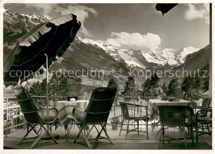 AK / Ansichtskarte Frutigen_BE Konditorei Tea Room Restaurant Pension Sieber Mueller Terrasse Alpenblick Frutigen BE