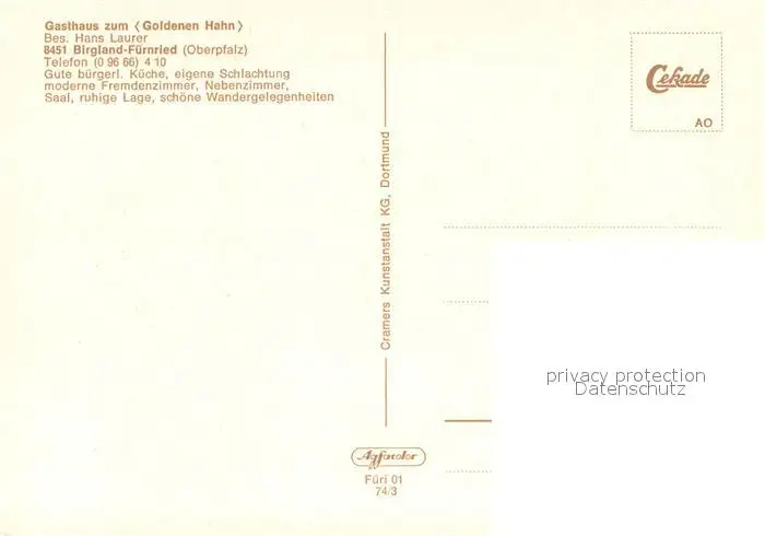 Fuernried Panorama Gasthaus zum Goldenen Hahn Fuernried postalisch nicht gelaufen nach 1965 Erhaltung siehe scans [WerneD78] WernPID7