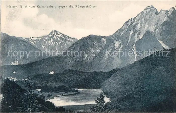 Fuessen_Allgaeu Blick vom Kalvarienberg auf die Koenigsschloesser Fuessen Allgaeu postalisch nicht gelaufen bis 1920 Erhaltung siehe scans [WerneD78] WernPID7