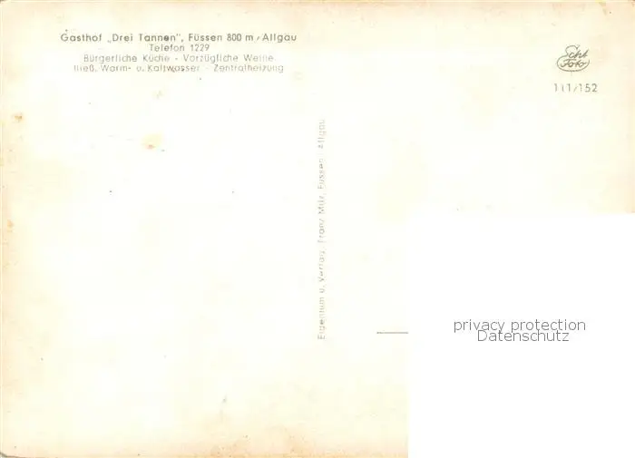 Fuessen_Allgaeu Gasthof Drei Tannen Innen- u. Aussenansichten Fuessen Allgaeu postalisch nicht gelaufen 1921-1965 Erhaltung siehe scans [LiesaD40] LiesID40